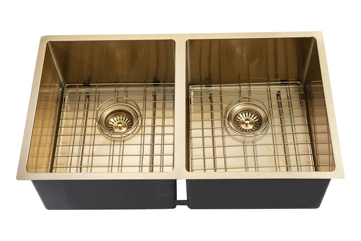 770*450*215mm Brushed Yellow Gold Hand-made Double Bowl Top/Flush/Under Mount Kitchen Sink – TWM6G