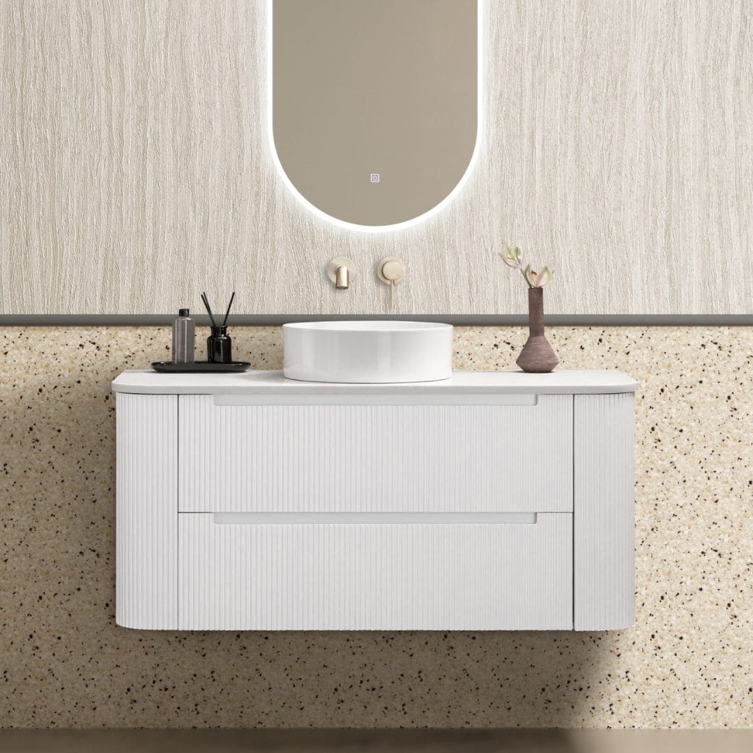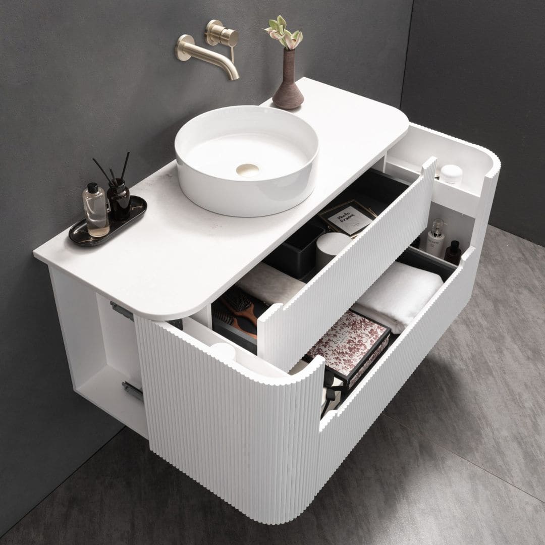 Available with Pristine White, Calacatta Marble, or Nordic Mist tops