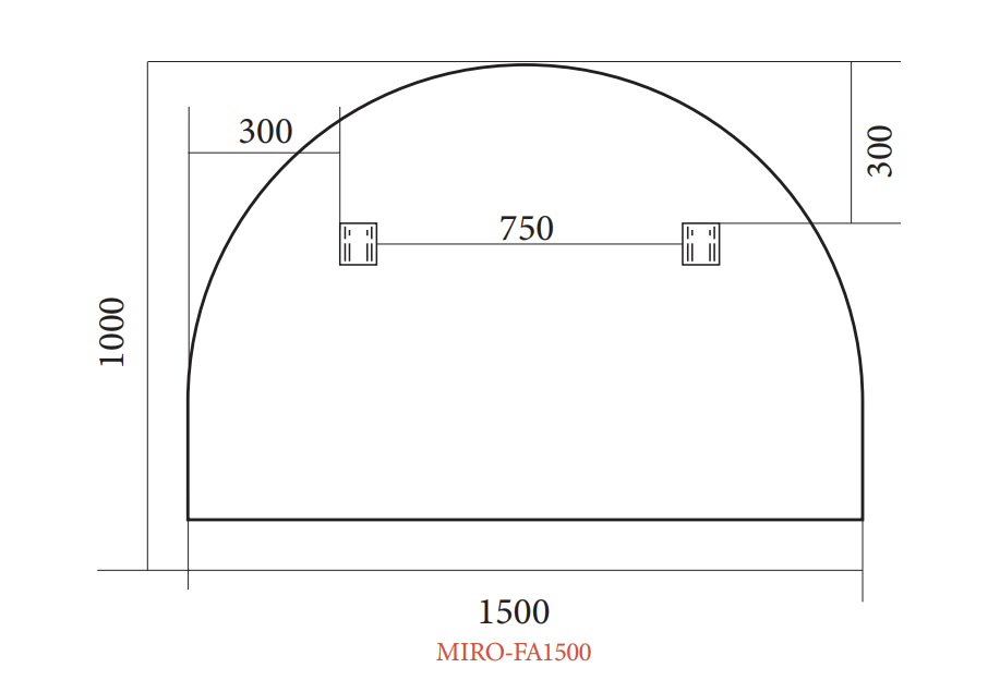 Convex Arch 1500x1000mm Matte Black Framed Mirror