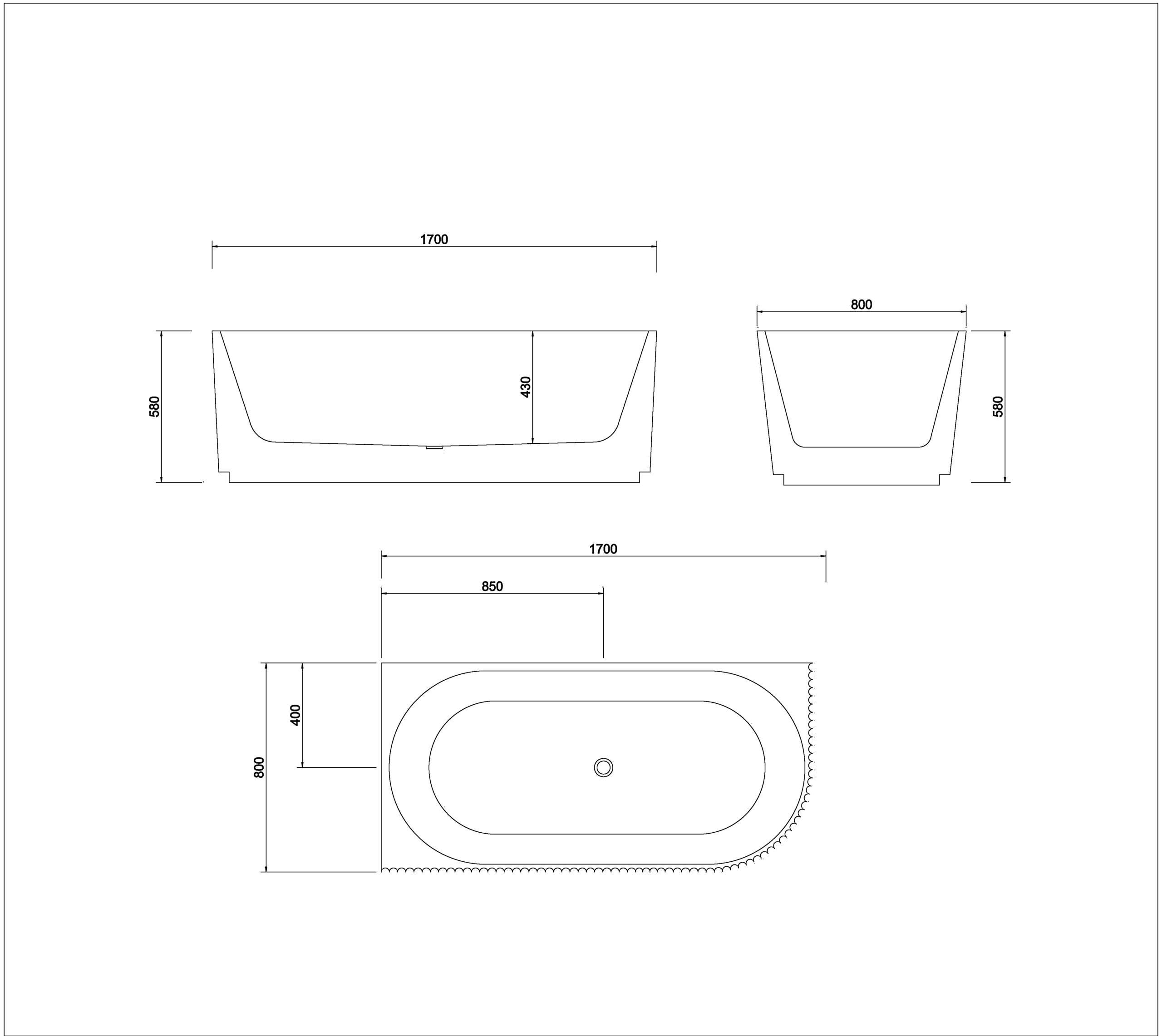 - Size: 1700mm (Long) x 800mm (Wide) x 580mm (Height)