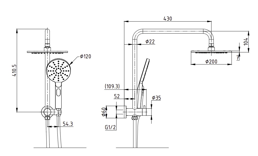 • Home MONDO Compact Twin Shower Set Brushed Brass